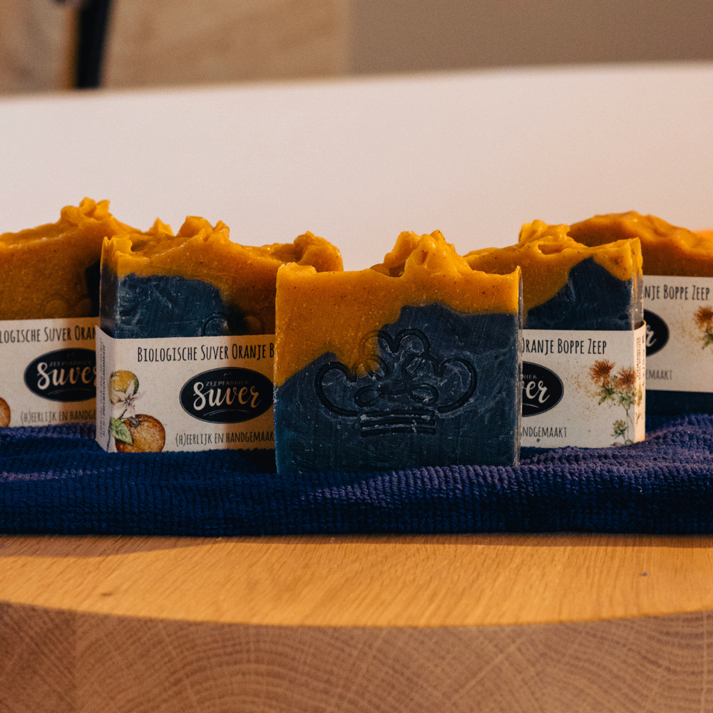 Deze zeep is speciaal ontwikkeld ter ere van Keningsdei 2026 in Dokkum, de stad waar sinds 2025 ook onze Zeepfabriek is gevestigd. Maar uiteraard zijn deze koninklijke bubbels voor elk moment en voor iedereen. We hopen dat jij je ook een koning te rijk zult voelen met onze Oranje Boppe zeep.